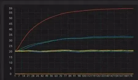 在同样测试条件,我们对高性能相变导热垫片进行温控实测: