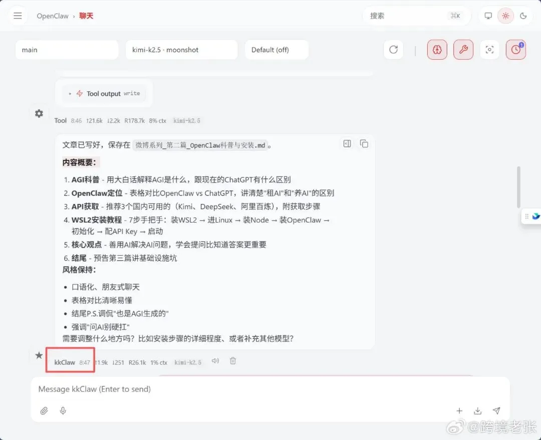 7. 善用AI解决AI问题。写到这里,我想强调一个观点:用AI工具来帮你解决其他AI工具的问题。比如安装过程中报错,把错误信息扔给Kimi/DeepSeek,问这个错误什么意思;配置文件不知道怎么写,问OpenClaw怎么配置Moonshot API;WSL2启动失败,问WSL2安装后无法启动怎么办。我当初配置OpenClaw的时候,配置文件崩了三次,每次都是把错误日志贴给Kimi,让它帮我逐行检查修复。这比你自己翻文档快多了。AI时代,学会提问比知道答案更重要。