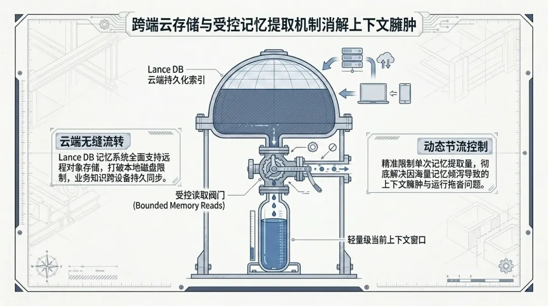 有界记忆读取:系统引入了默认限制,控制单次提取到上下文窗口的记忆量。这一改进有效解决了长会话中因上下文窗口臃肿导致的推理延迟问题,在保持记忆连贯性的同时,显著提升了运行效率。