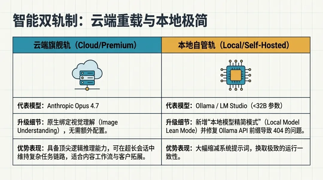 无论你是追求云端协同的跨设备办公,还是追求极致性价比的本地模型部署,这个版本都提供了相应的解决方案。建议更新体验,根据业务需求配置新特性,让工作流更加稳健高效。