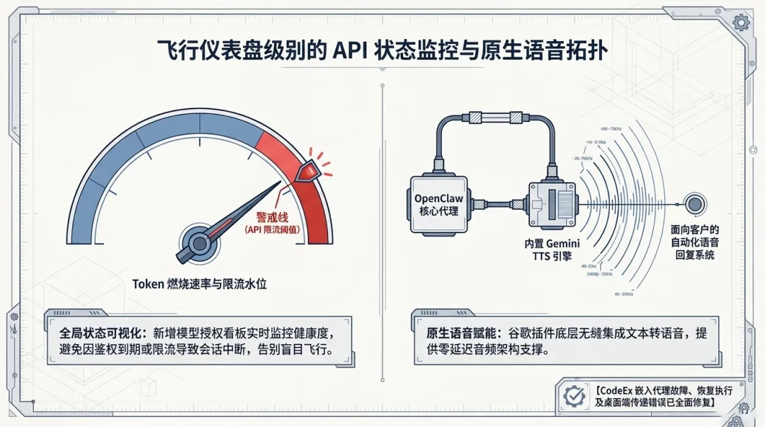 UI 控制台增强:新增“模型授权状态卡”,直观展示 Token 健康度与 API 速率限制压力,避免了因鉴权或限流导致的任务中断,提升了系统的可观测性。