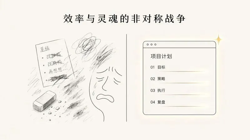 因为在那段你对着白纸憋不出一个字的痛苦时刻,才是你大脑肌肉真正生长的瞬间。如果你跳过了那段窘迫,你就跳过了对自己逻辑漏洞的敏感捕捉。到最后,你写出的所有文字都将是‘他人的影子’。