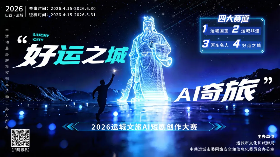 运城日报讯(记者 付炎)4月15日,由市文化和旅游局、市委网信办联合主办的“好运之城,AI奇旅”2026运城文旅AI短剧创作大赛正式面向全国征集作品。