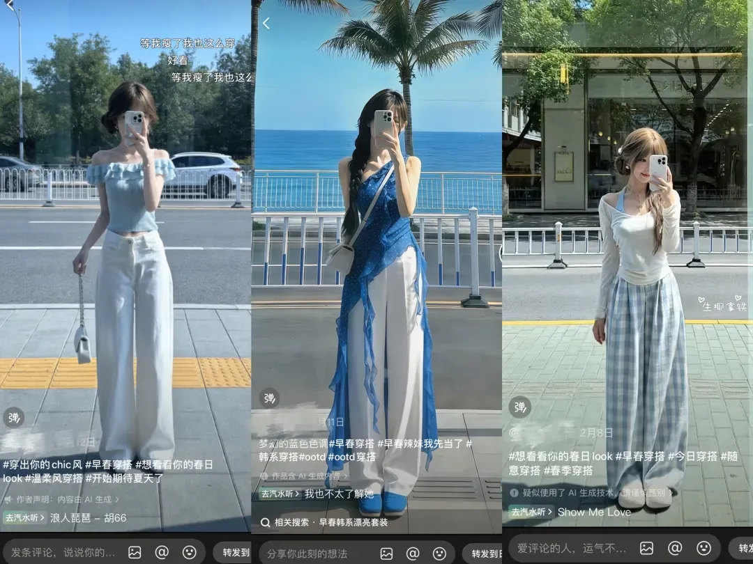 相信很多朋友都刷到过类似下面这样的AI女装穿搭对镜自拍带货视频。