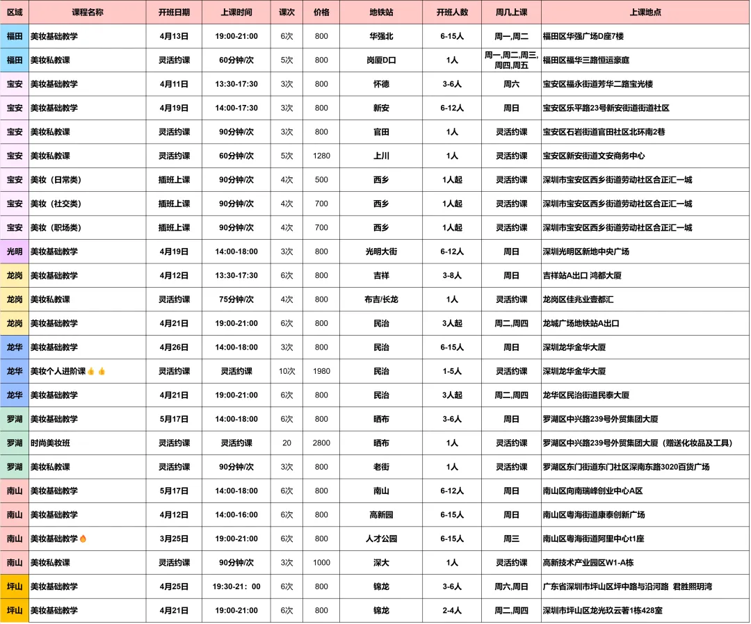 比如你是在福田,想要参与美妆课