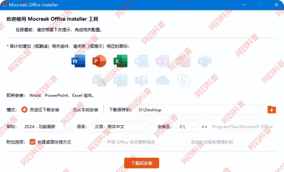 支持系统:Windows 7 ~ Windows 11 (全版本) 支持版本:Office 全系列 + Visio + Project 核心优势: ✅ 可视化界面,无需写代码,小白友好 ✅ 一键下载+安装+激活一站式服务 ✅ 自由选择组件、安装路径、更新通道 ✅ 内置激活管理、彻底卸载、修复功能