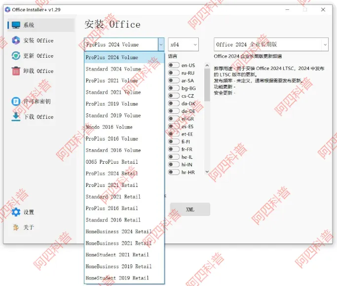 支持系统:Windows 7 SP1 ~ Windows 11 (32/64位) 支持版本:Office 365 / 2024 / 2021 / 2019 / 2016 核心文件: setup.exe+configuration.xml