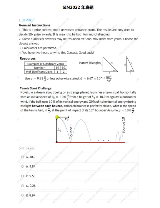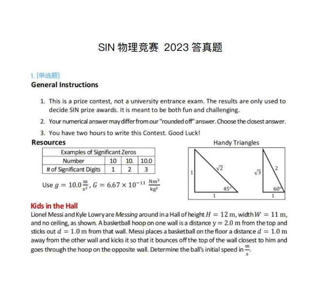 SIN(Sir Isaac Newton Exam)滑铁卢牛顿物理竞赛,是加拿大滑铁卢大学物理系主办、全球高中生公认的高含金量物理思维赛事,是理工科申请的加分利器。今天为大家整理了SIN物理竞赛2019-2025年的真题,免费领取!