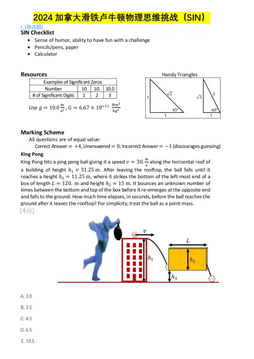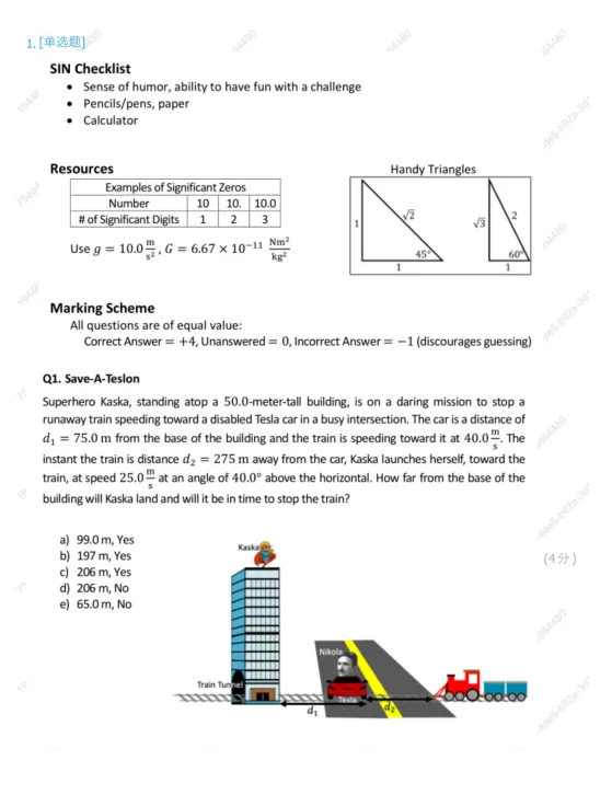 SIN 不考死记硬背,重物理直觉、逻辑推导与现实应用,题目常结合时事与幽默场景,难度适中但区分度高