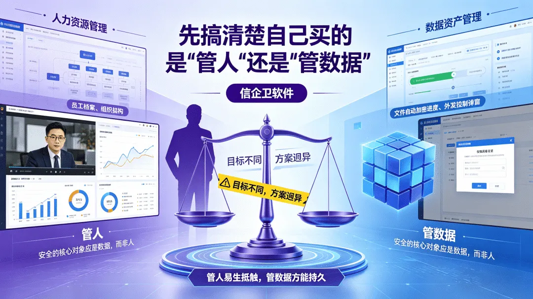 两类需求听起来相关,但产品架构差异很大。搞清楚自己的优先级,才能把预算花在刀刃上,不然买了个"行为监控强、数据保护弱"的产品,结果员工摸鱼管住了,核心文件还是照样流出去。