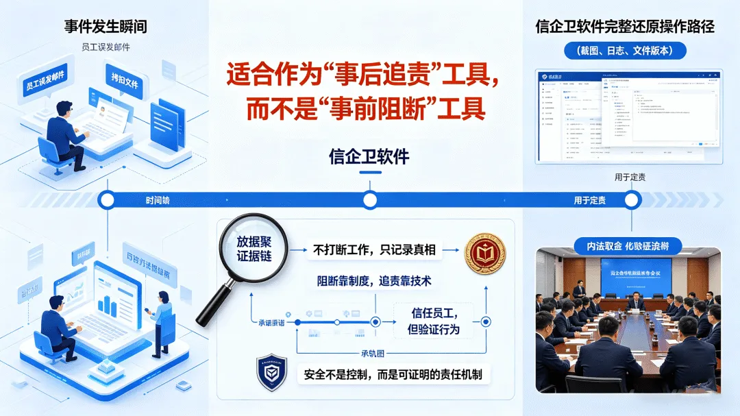 功能细则偏重记录和留证,主动防控能力相对弱。更适合作为"事后追责"工具,而不是"事前阻断"工具。
