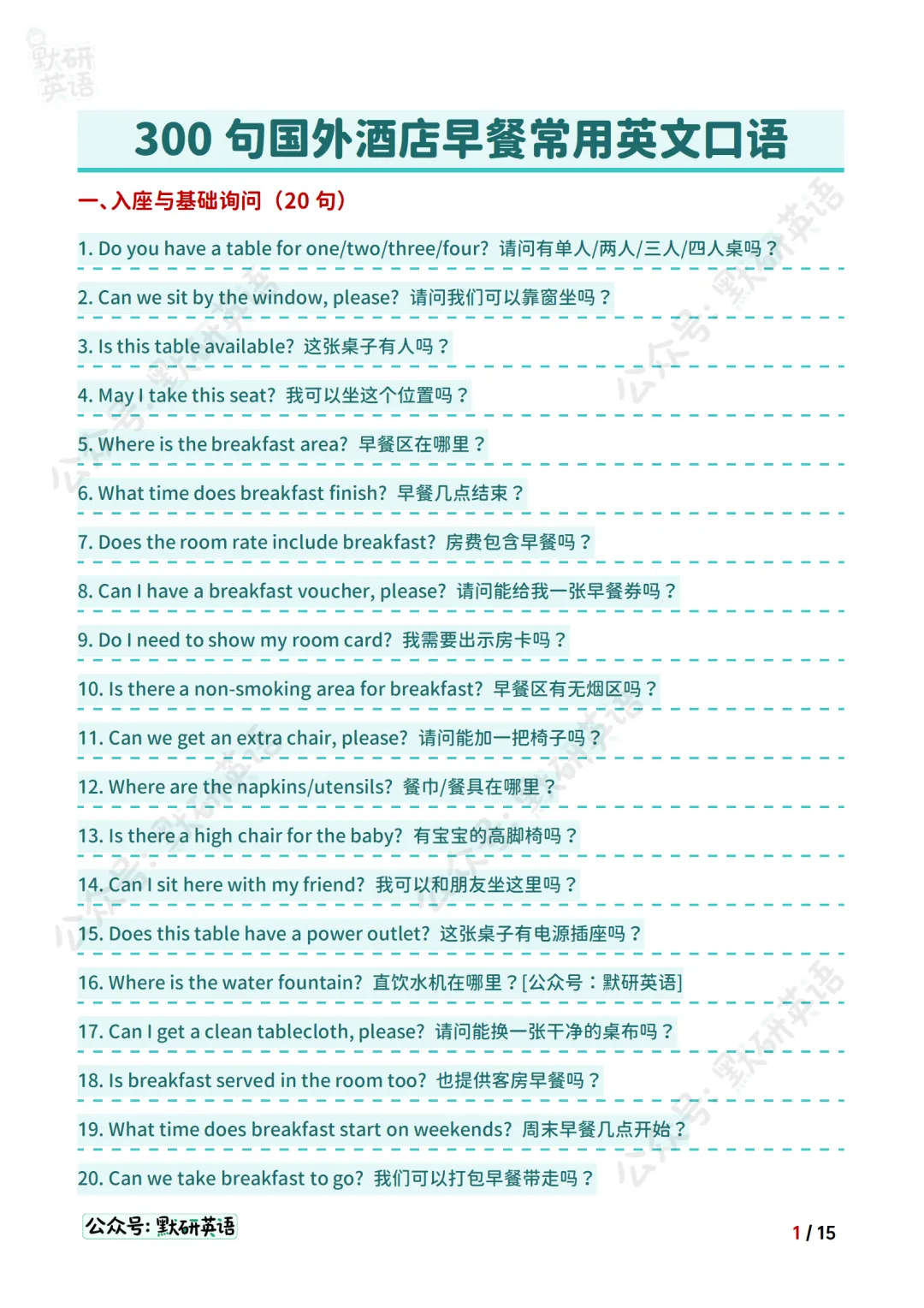整理了300句国外酒店早餐常用英文口语,覆盖所有场景,拿来就说,不用死记硬背,彻底告别语言尴尬✅