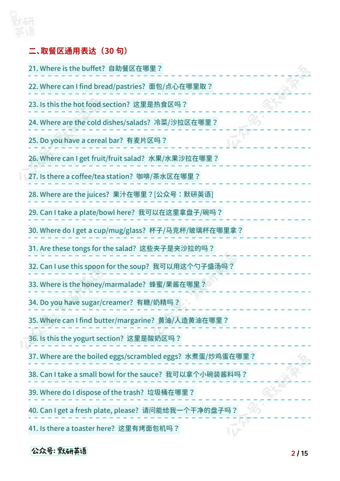 ✅ 入座不慌:“有两人桌吗?”“能靠窗坐吗?”“需要出示房卡吗?” 刚到早餐区也能从容开口