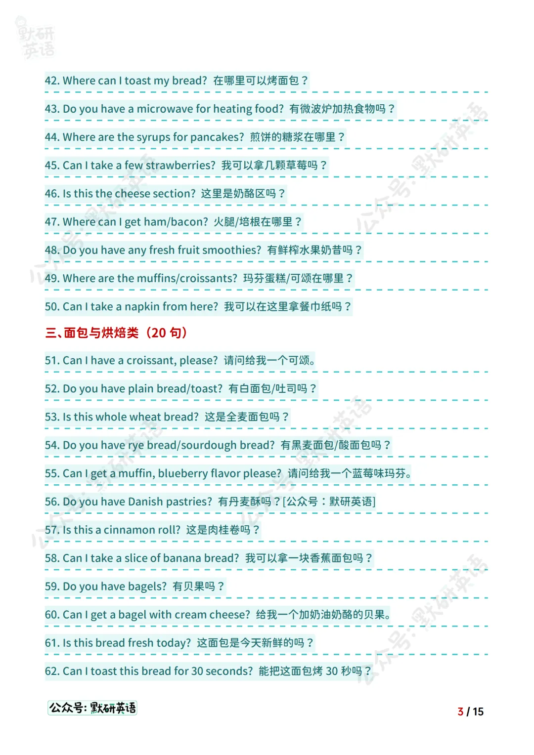 56. Do you have Danish pastries? 有丹麦酥吗?[公众号:默研英语]