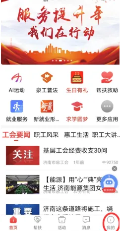 打开“齐鲁工惠”APP,在首页轮播图上方切换到所在市总工会;