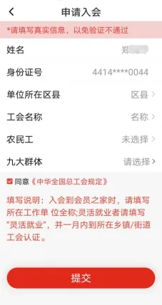 未备案的职工会员注册后可申请入会,进行实名认证。