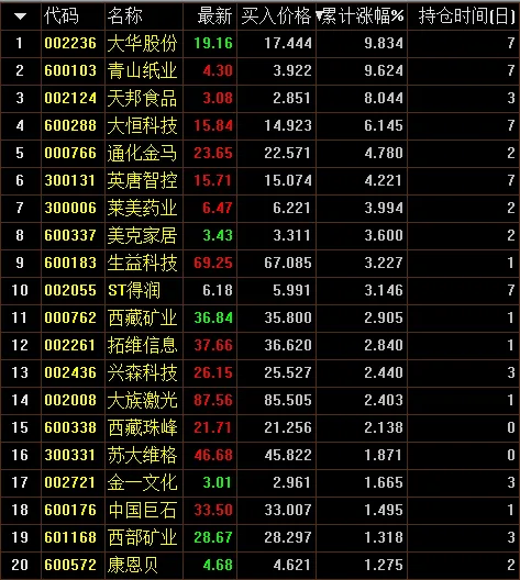 (13号小试基金账户最新持仓标的(时间单位:日)