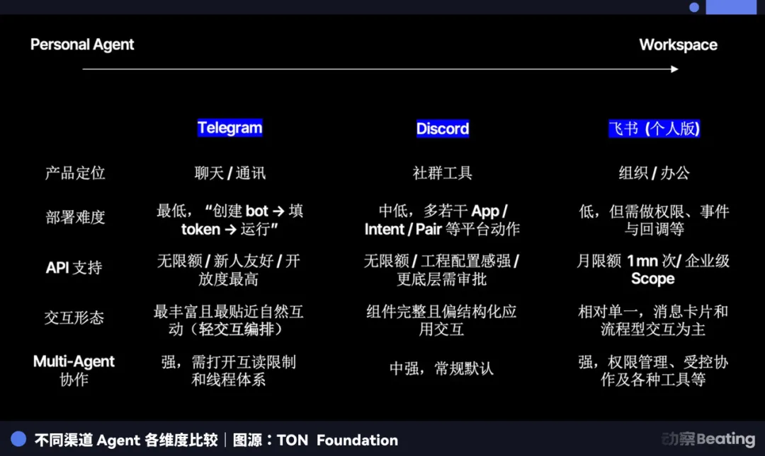 有意思的是,这场浪潮在中文世界里存在一条鸿沟。本土派对 Telegram 只闻其名,不用其身;而海外派、AI 从业者,以及更偏向自己动手尝试的人们,很多都自然选择地将 Telegram 作为部署 Agent 的载体。