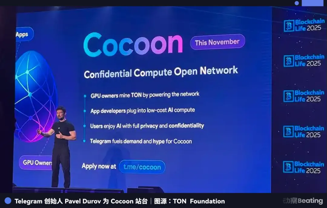 这种需求并不是空中楼阁。Cocoon 已于 2025 年 11 月上线第一版,Telegram 创始人 Pavel Durov 也在大会为这一 GPU 推理算力网络站台。