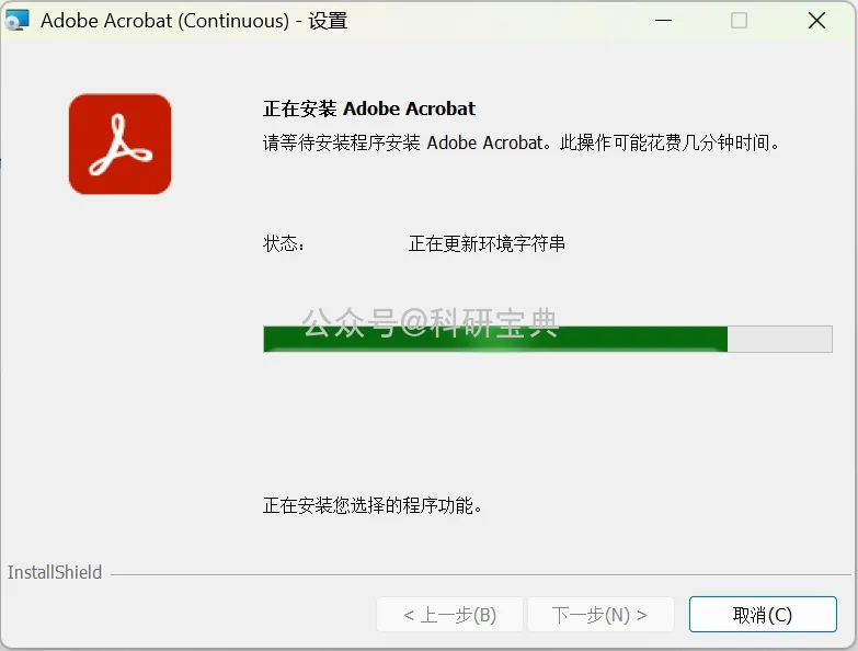 4、安装中……(时间稍微有点长,小典这里安装了5分钟);