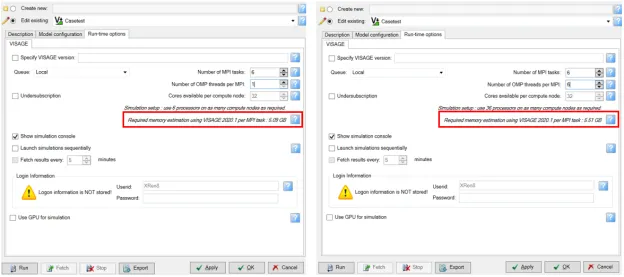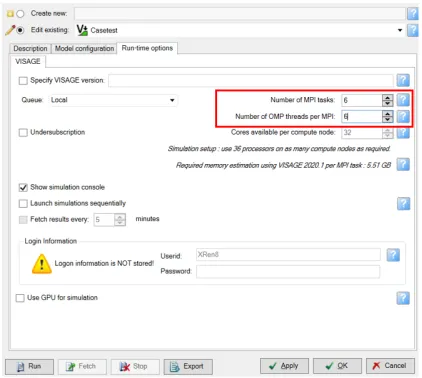 在Petrel Geomechanics模型定义工况时,用户可以根据模型大小及计算机的硬件配置来设置MPI并行数及OMP并行数(如图1),MPI的上限为计算机的核数,OMP虽然不受核数的限制,但是多个OMP并行会增加单个MPI任务的内存占用,如图2,Petrel软件可以根据模型的网格数评估每个MPI 任务占用的内存,如图2示例所示,当OMP设置为1时,单MPI任务内存占用为5.09GB;OMP设置为6时,单MPI任务内存占用为5.51GB。因此,需要综合计算机的内存以及核数综合考虑以实现最佳的运算性能。