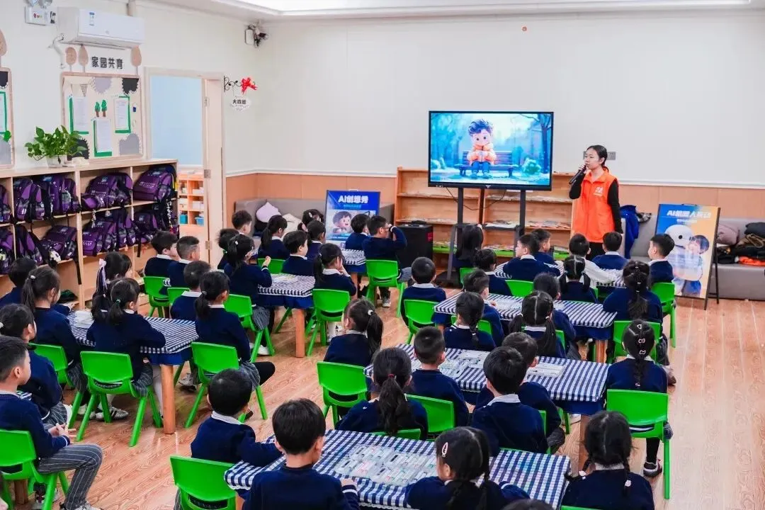 最令人惊喜的是数字人互动环节—栩栩如生的AI小朋友能眨眼对话!让孩子们了解AI、机器人等知识亮点,瞬间点燃探索热情。