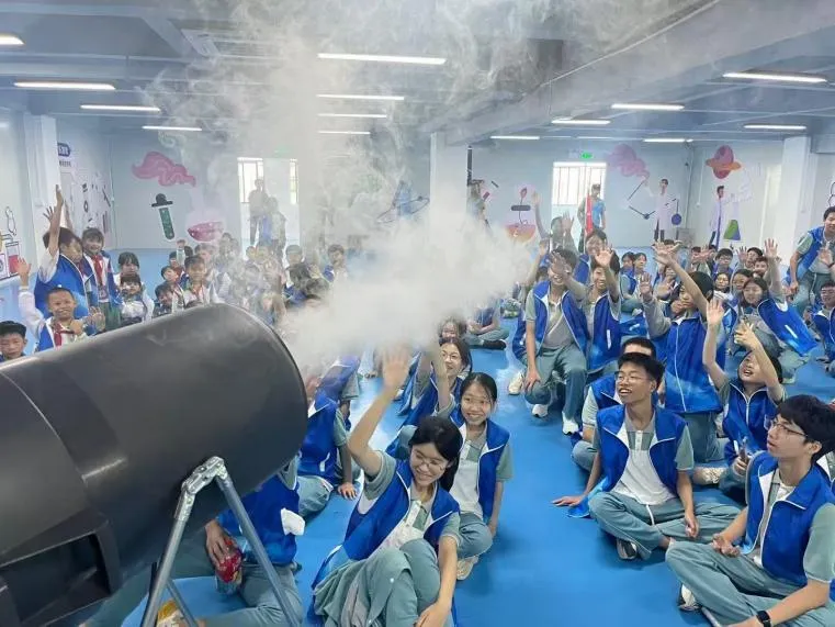 空气炮蓄力发射,隔空击倒目标,感受空气的神秘力量;干冰实验云雾缭绕,瞬间坠入梦幻仙境,解锁低温魔法;光剑穿气球,不破气球的神奇操作,见证光学与力学的奇妙碰撞;伯努利实验趣味上演,小球悬空、气流托举,揭秘看不见的空气压强奥秘。