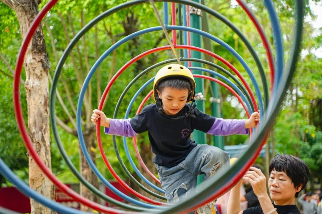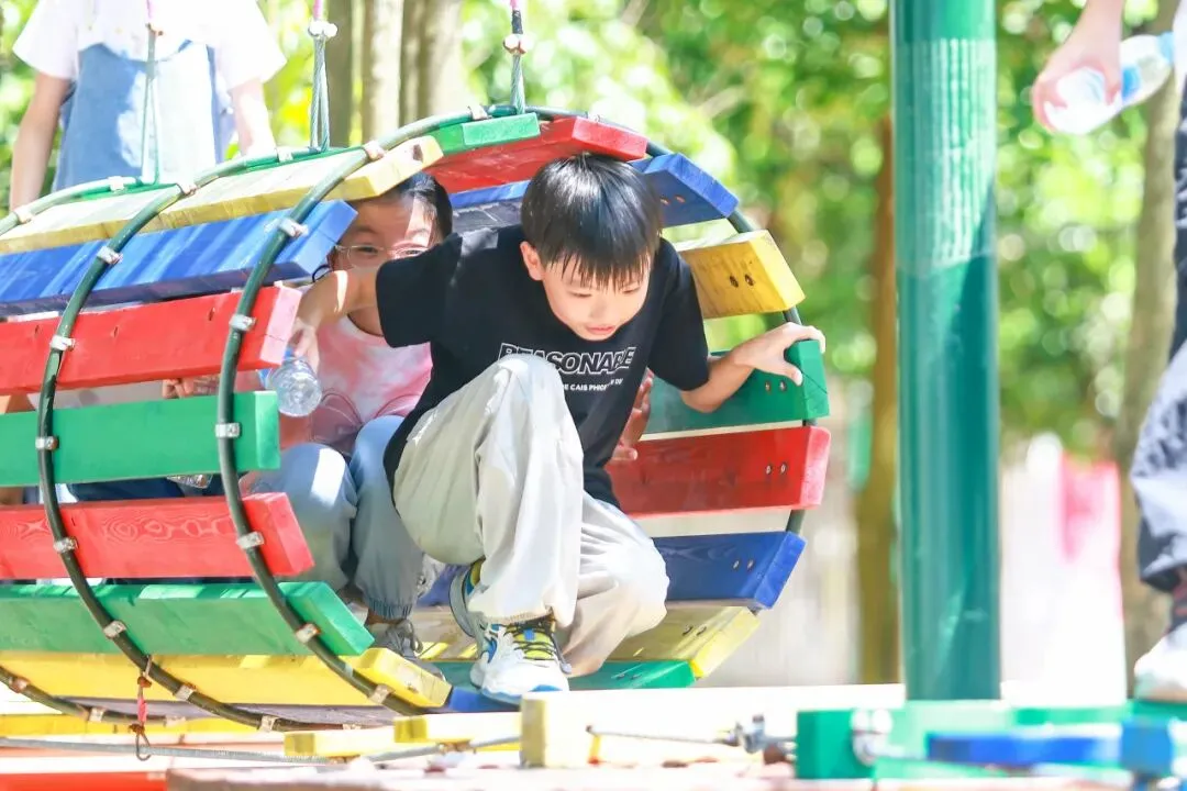 这里是孩子们的勇气试炼场🌱风雨无阻的设计,藏着最鲜活的成长力量。从攀爬网的步步探索,到团队闯关的并肩协每一次攀爬、奔跑、挑战都在悄悄积攒自信与勇气。