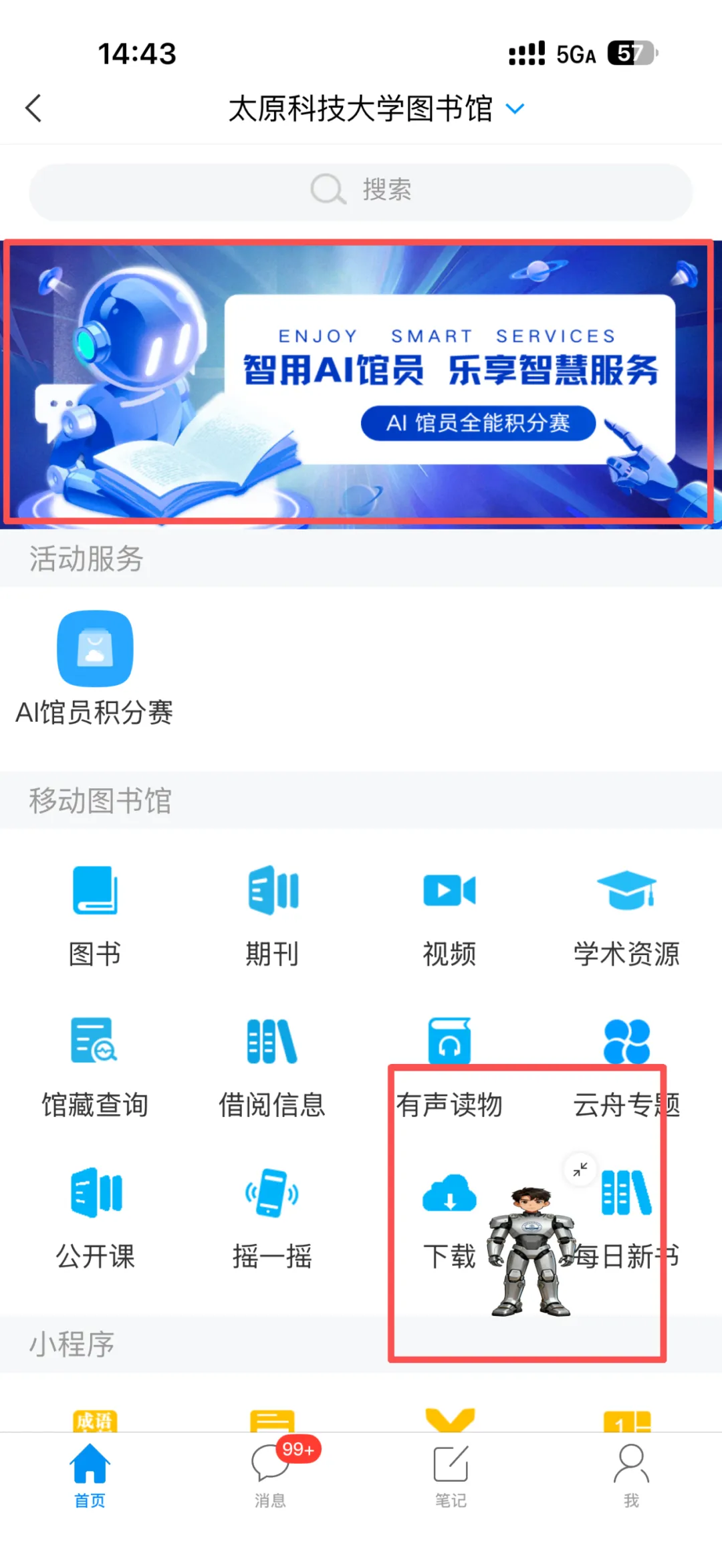 进入图书馆页面点击轮播图进行报名,再返回点击AI数字人参与活动并积分