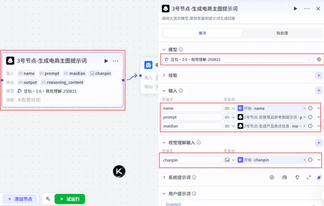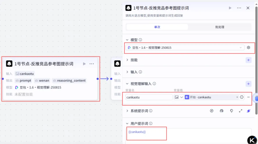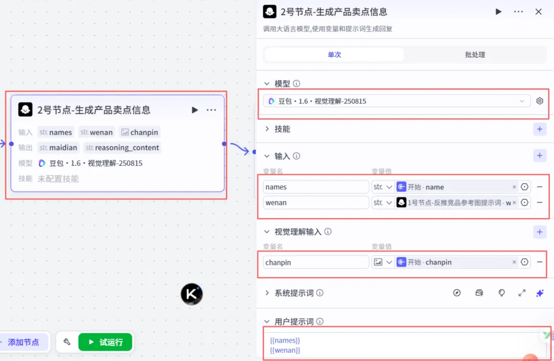 调用我们的老朋友豆包大模型,解析竞品图的视觉要素:产品类型、场景氛围、光影角度、文字卖点位置
