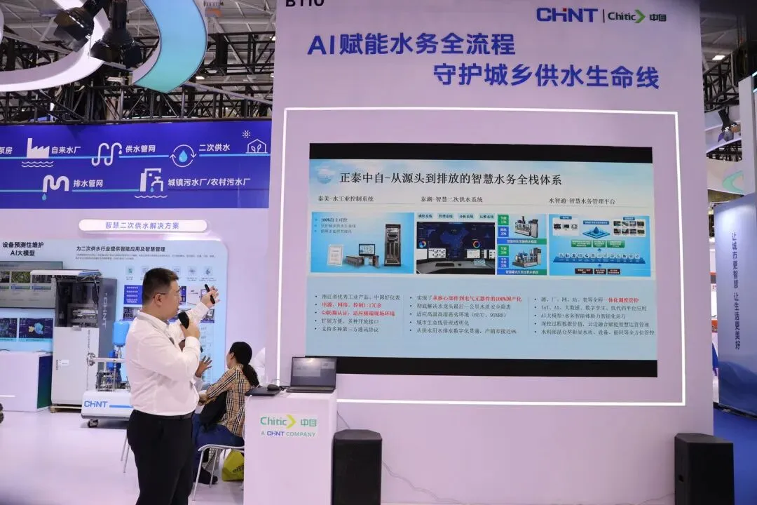 当AI遇上智慧水务,正泰中自给出了答案。展位上重点展示了智慧水厂八大AI智能体、AI智慧污水厂、AI水务运营大模型,全方位彰显AI驱动下水务管理的“智”变升级,为行业运营管理带来全新活力与无限可能。