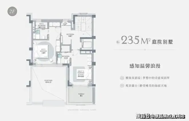 二楼双套房设计,尽显顶豪生活的尊贵;次卧套房带花园露台,“人生中没有比花上几个小时享用下午茶更幸福的了。”