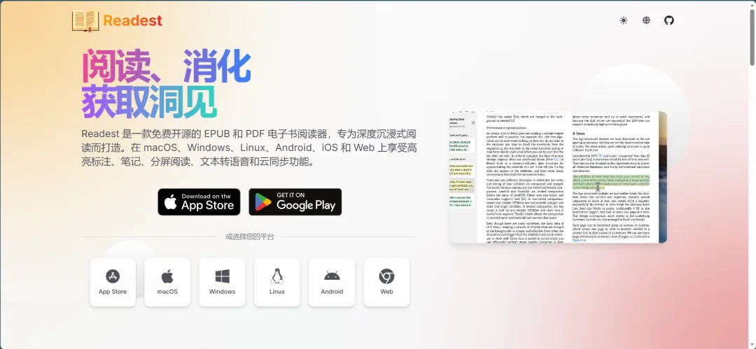 宝藏阅读 App|Readest微信读书不支持朗读自己上传的书籍?推荐用 Readest。它是一款免费开源的 EPUB、PDF 电子书阅读器,支持 AI 驱动的文本转语音(TTS),可以流畅朗读各类电子书,还能自由切换多种自然好听的朗读音色,自带翻译超方便。下载地址:官网:https://readest.com/
