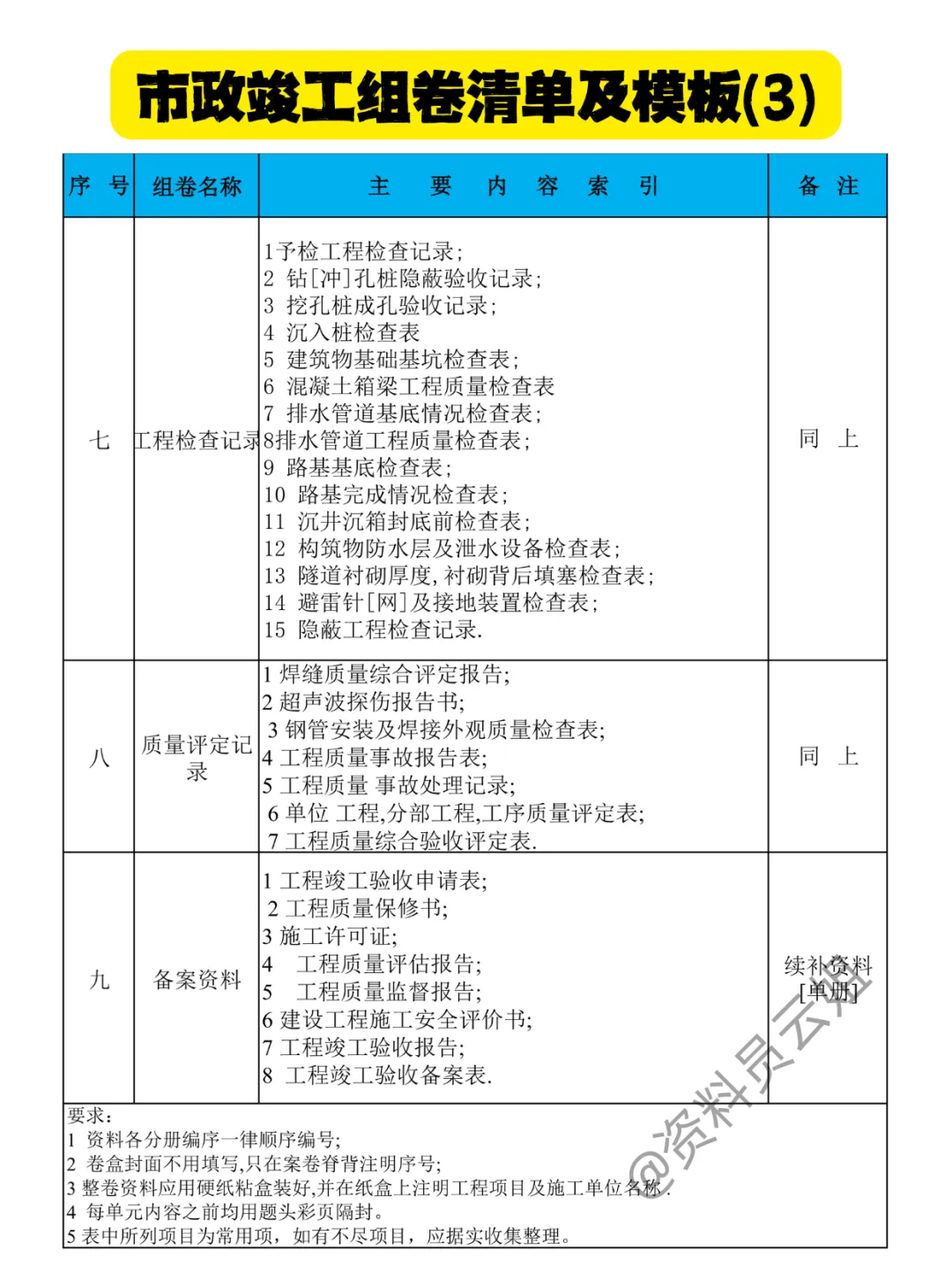 市政竣工组卷全套清单来了。从开工到验收,从试验记录到竣工图,资料繁杂不再怕。这份保姆级教程,专治组卷归档的各种疑难杂症,让你上手快,少走弯路。
