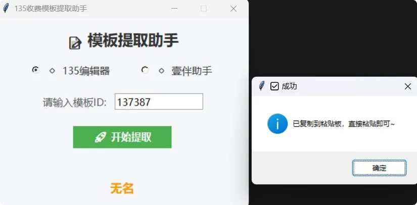 将获取到的模板ID输入到模板提取助手工具中,工具会自动连接服务器,获取该模板的完整代码。整个过程通常只需要几秒钟,非常快捷。