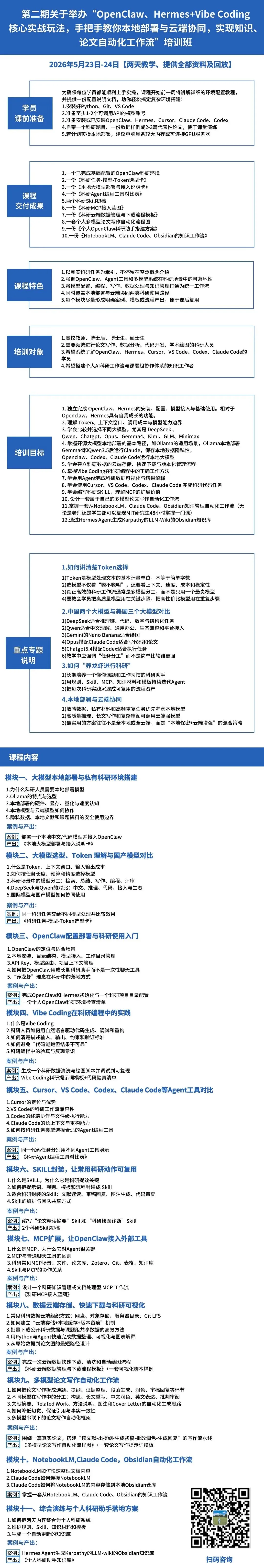 关于举办“OpenClaw+Vibe Coding核心实战玩法,手把手教你本地部署与云端协同,“养”出隐私安全且强大的科研辅助”培训班