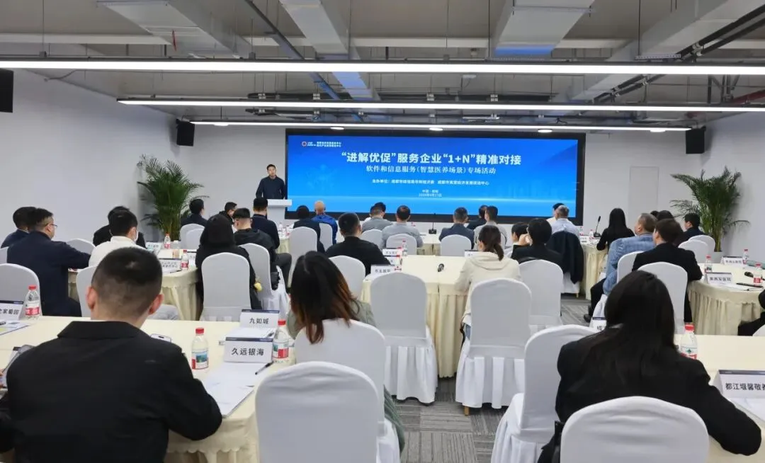 为深入贯彻全国两会精神,落实市委、市政府工作部署,推动“进解优促”工作走深走实、迭代升级,4月17日,软件和信息服务(智慧医养场景)“1+N”精准对接专场活动在成都市民营经济发展促进中心顺利举行。此次活动既是成都深化“进解优促”服务、优化营商环境的具体实践,也是推动软件和信息服务业高质量发展、助力产业链强链补链的重要举措。