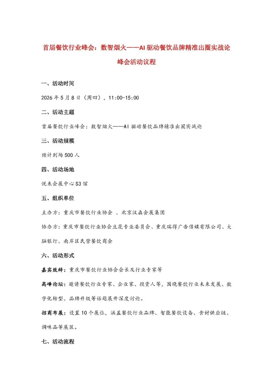 首届餐饮行业峰会:数智烟火——AI驱动餐饮品牌精准出圈实战论峰会渝你相约5月8日重庆国际博览中心S3馆