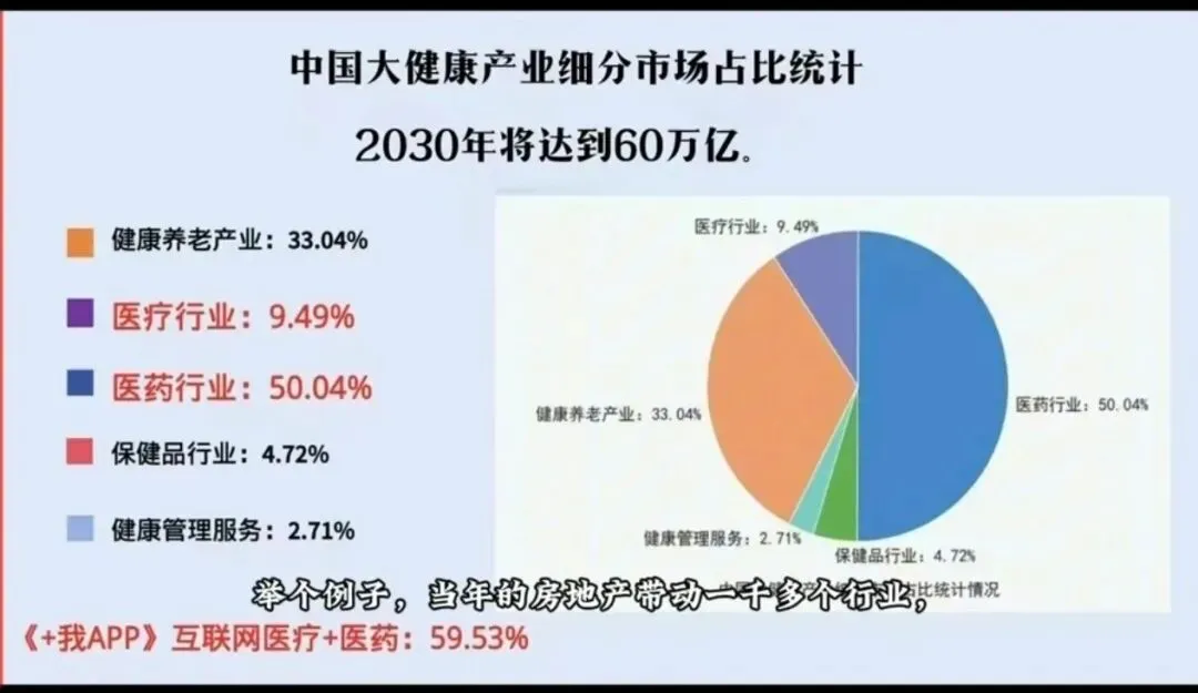 我们覆盖大健康全生命周期,市场空间无限。国内大健康市场中,医药行业占比近50.04%,养老行业33.04%,保健品行业4.72%,医疗服务9.49%。我们整合全领域资源,实现98%市场覆盖率。同时,我们布局国内国际双市场,未来的增长潜力和想象空间不可限量。