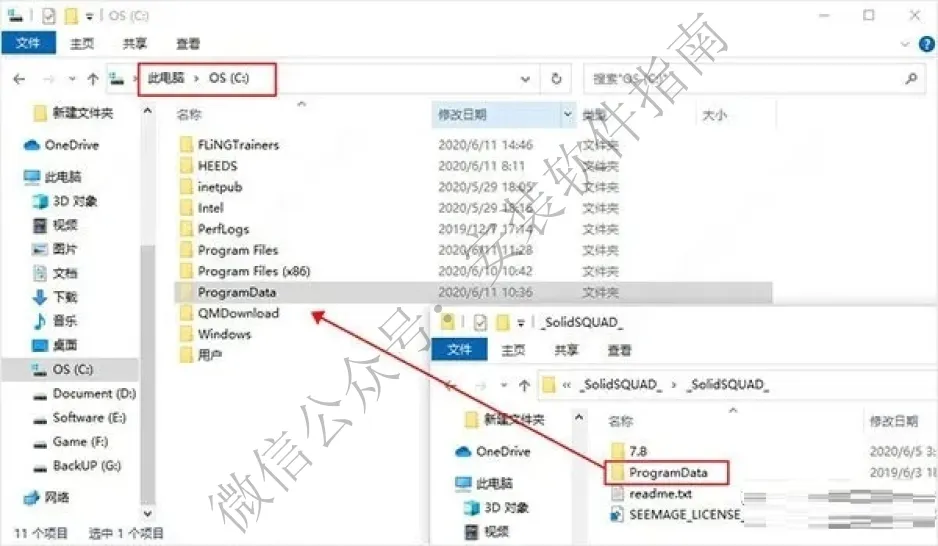 2.首先解压补丁_SolidSQUAD,将 "ProgramData" 文件夹复制到C盘根目录下;