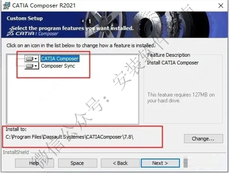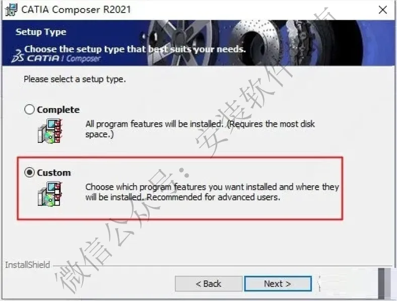 4.双击文件“x64-CATIAComposerFull-R2021.msi”安装软件,安装选项选择自定义coustom;