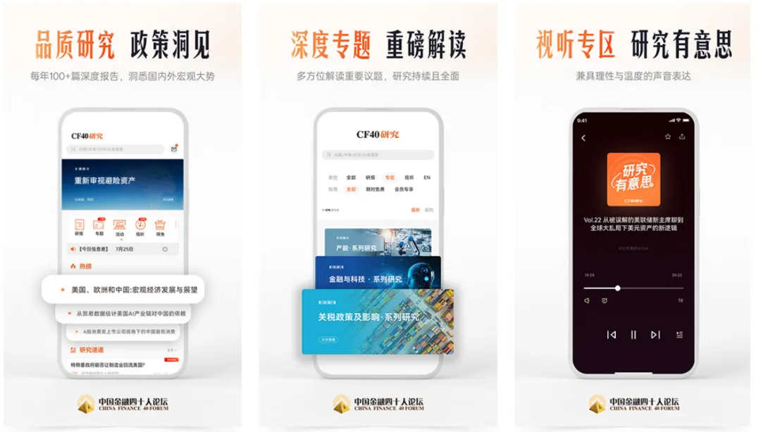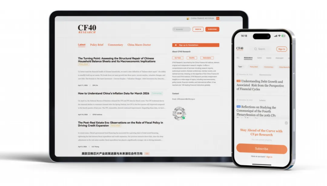 2026年3月,CF40官方数字化平台——“CF40”APP正式上线。APP整合了原创深度研究报告、专题音视频及闭门研讨会等全维度内容,旨在为用户提供专业、有品质的数字化智库研究服务。