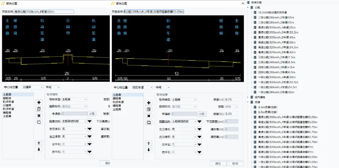 基于国产数维道路BIM软件完成道路精细化BIM模型建立,在路线建模完成后,通过编辑纵断数据,然后根据规划设计方案完成横断面模板的创建,最后完成道路的自动参数化建模。依据国内道路设计规范,满足基本道路等级的建模,超高、过渡、拉坡等,整体自动化建模国内适配程度高。
