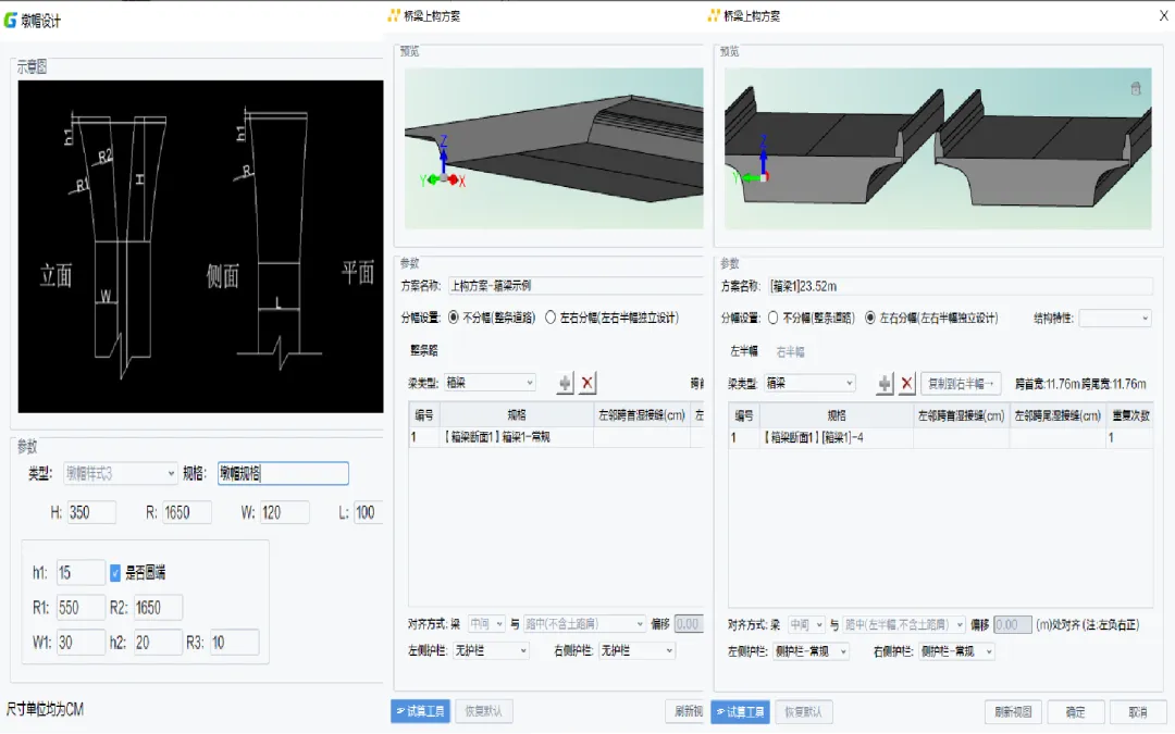 可通过国产数维BIM软件定义桥梁位置(选择道路桩号)及桥跨组合,自动完成路面转化桥梁模型的过程,并可进一步对桥墩、墩帽、基础详细设计,最终形成满足规划设计方案要求的精细化互通立交桥梁BIM模型。
