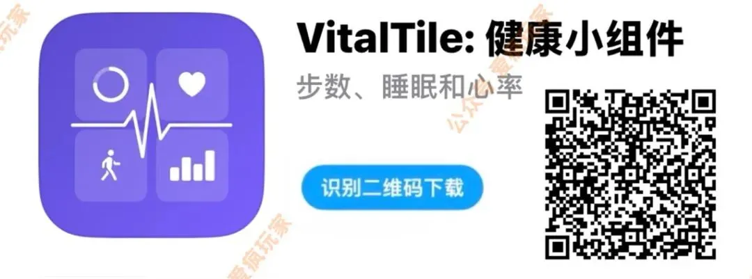 让iPhone主屏幕呼吸的App,看一眼就踏实了 本文部分内容来源于网络,侵权请联系删除,谢绝转载。今日分享01(健康小组件)最近发现个小工具叫 VitalTile,能把苹果健康里的步数、心率、睡眠啥的七十多种数据直接做成小组件扔主屏幕上,省得再点进 App 里翻。样式还挺多,圆环、仪表盘都有,颜色字体也能自己搭着玩。我自己放了个步数和心率的,每天扫一眼进度还挺有动力。对了,目前高级完整版好像正在限免,感兴趣的话可以抓紧去收一个,手慢可能就没了。获取方式:点开下方卡片,长按图片识别图中二维码,尚不可用代表已经下架,随时失效,尽快获取。没有了等待下次更新。最后想说:其他几款资源,需要的可以点击下方卡片,发消息:资源合集①ios最新福利,一个 人的时候悄悄使用!②ios端新版本已上架,速度不错!③🐮🐮终于来了,不要错过!