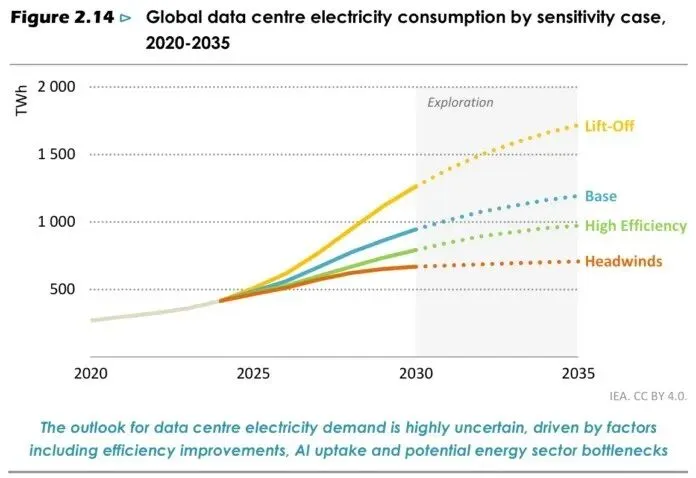 ChatGPT及类似工具依赖大型数据中心。这些设施目前约占全球电力消耗的1%至1.5%。由于多种变量影响,对其未来能源消耗的预测差异很大。