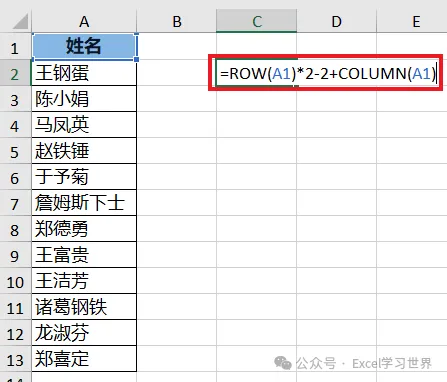 =ROW(A1)*2-2+COLUMN(A1)