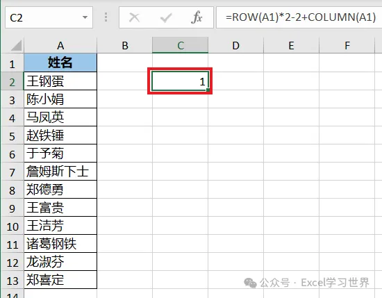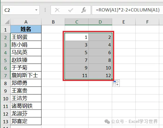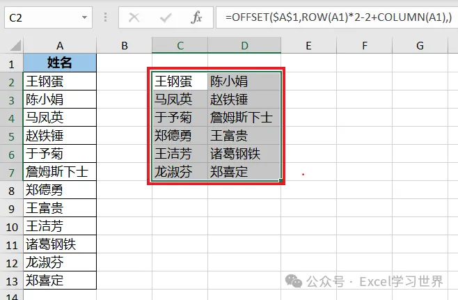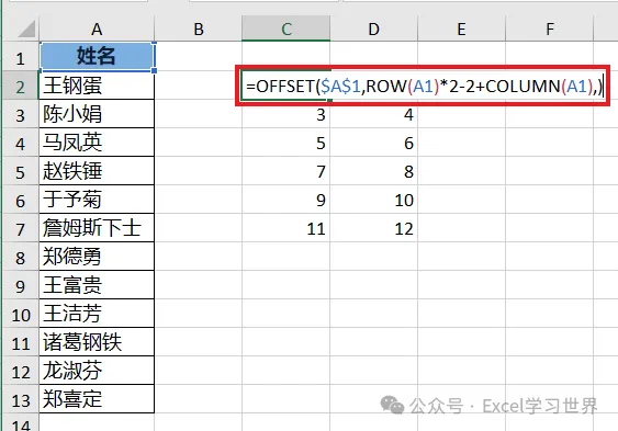 搞懂了这个公式原理,我们再基于此基础上套用 offset 函数,从而将数字替换成列表中的姓名。