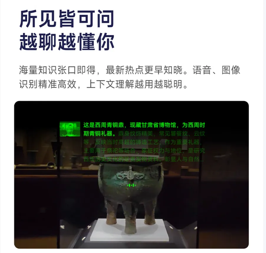 与此同时,千问S1还支持“实况对话”功能——逛博物馆时,看到一幅画直接问“作者是谁”,走到下一幅直接说“那这幅呢”,不需要反复唤醒,AI就能感知你的所见所闻,全程连续对话、实时讲解。这种沉浸式的交互体验,才是AI眼镜区别于手机的真正价值所在。