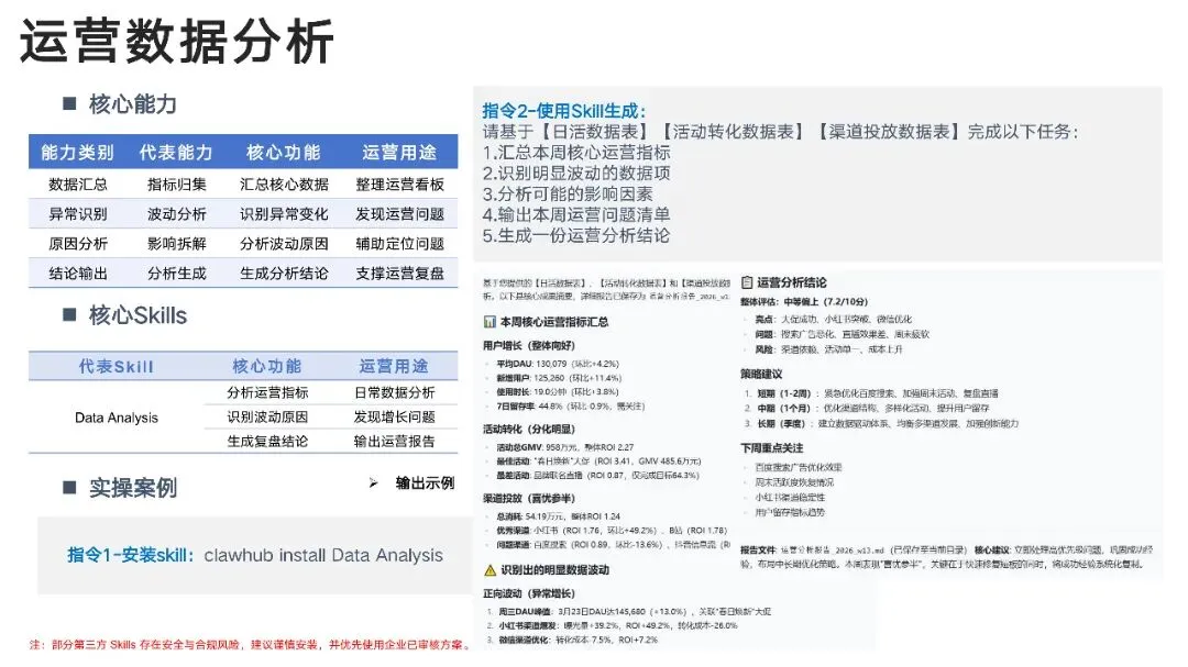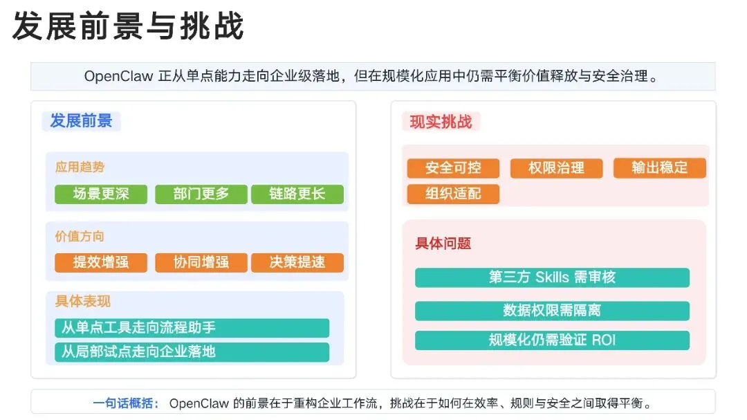 报告面向企业小白,全景展示了AI智能体OpenClaw在人力资源、财务、运营、销售、市场、技术、产品、法务等八大核心场景中的落地应用。报告不仅拆解了简历解析、报销审核、运营分析、合同审查等具体实操,更强调OpenClaw的真正价值在于打通跨部门流程,将单点效率升级为完整的智能工作链路。文中附有大量可直接复用的指令与案例,为企业探索AI办公提供了清晰的“即插即用”路线图。